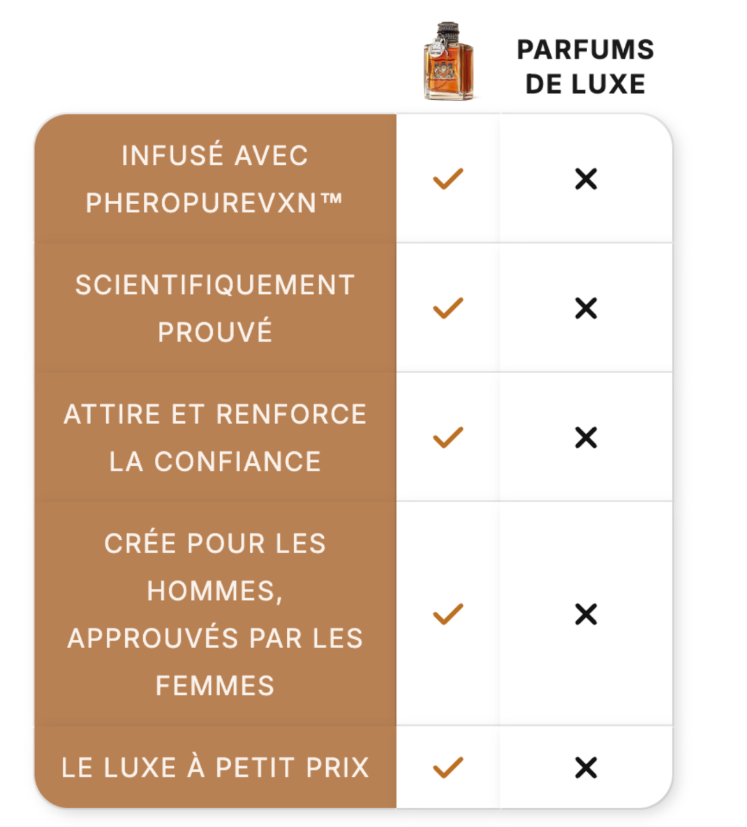 Nos parfums sont fabriqués avec des ingrédients de haute qualité et infusés avec PheroPureVXN™, une formule conçue pour être sûre et adaptée à un usage quotidien. Vous pouvez les porter en toute confiance, sachant qu’ils sont élaborés pour potentiellement renforcer votre attractivité, tout en étant généralement doux pour la peau.